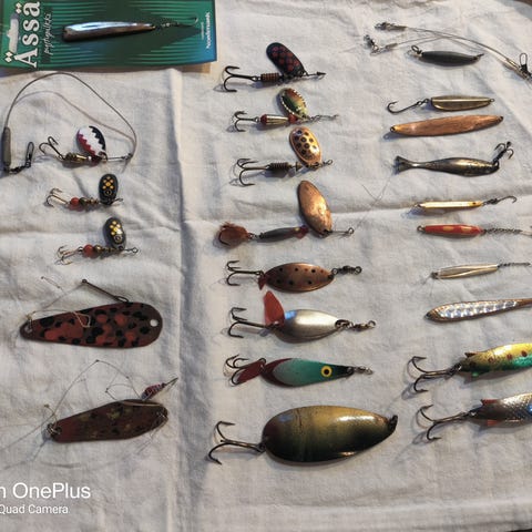 Kalastusvälinepaketti sisältää useita pilkkivapoja ja erilaisia vieheitä. Välineet soveltuvat pilkkimiseen ja muuhun kalastukseen. Paketti sisältää myös vieherasian, jossa on useita erilaisia vieheitä eri kokoja ja malleja. Hyvin tulee ahvenia, pakkanen täynnä, nyt seuraavalle.