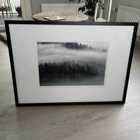 Taulu, jossa on mustavalkoinen lehtikuviointi. Kehyksellinen seinäkoriste, joka sopii erilaisiin sisustustyyleihin.