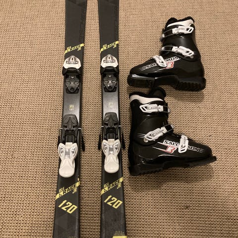 Lasten laskettelusetti: sukset 120cm, monot (274mm) + kypärä