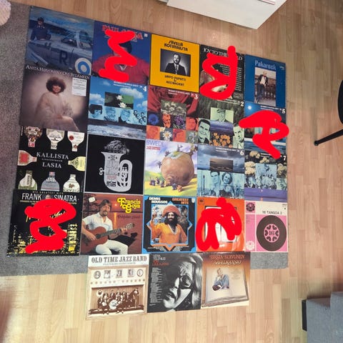 Kuvien mukaiset vinyylit jouten. Enemmänkin on, vaan tori ei suostu lataamaan kuvia.