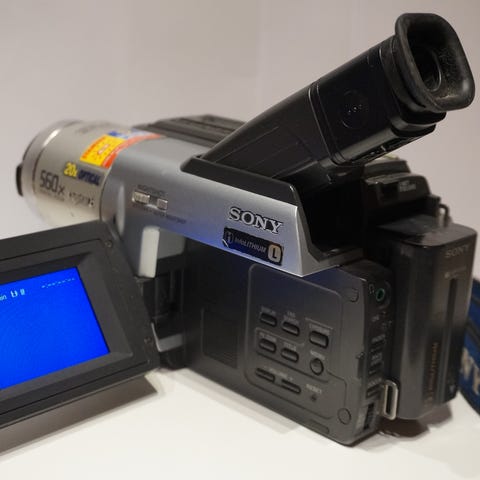 Kovalevylle tallentava videokamera kosketusnäytöllä. Myös muistikortti paikka