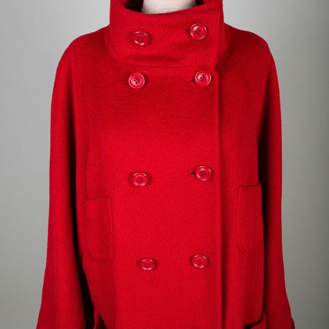 90% villa 10% kashmir, vuori viskoosia. Iso kaulus josta saa korville käännettyä kivasti tuulensuojaa, vyö, vetoketjutaskut edessä. Hyvässä kunnossa (mennyt vain säilytyksessä hieman ruttuun). Kotimainen klassikko!