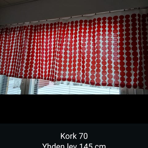 Marimekko Kivet -kuosinen verho, ompelijalla teetetty. Verhon pituus 270 cm. Verhon takana yläreunassa verhonauha, verhonipsut kuuluvat kauppaan.