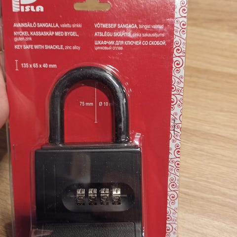 Musta avainboksi, jossa on nelinumeroinen yhdistelmälukko. Mukana kiinnitystarvikkeet. Uusi, jäänyt ylimääräiseksi. Materiaali jotain metallia.
