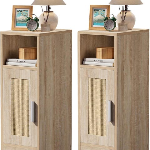 Myynnissä tyylikäs 2 kpl setti moderneja yöpöytiä, jotka sopivat täydellisesti pieniin tiloihin. Jokainen kapea yöpöytä on valmistettu MDF-levystä ja siinä on vesitiivis pöytätaso, joten se on helppo pitää puhtaana. Musta yöpöytä tuo makuuhuoneeseen modernia ilmettä, ja korkea rakenne tarjoaa runsaasti säilytystilaa.