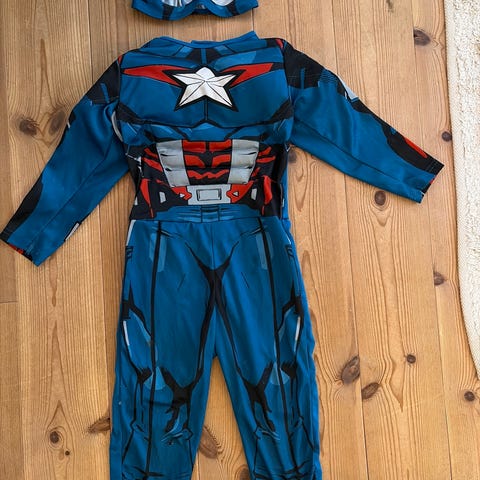 Captain America koko n. 110 ( 3-4 years luki lapussa). Lihasten kohdalla on jo nukkaa. 3e.