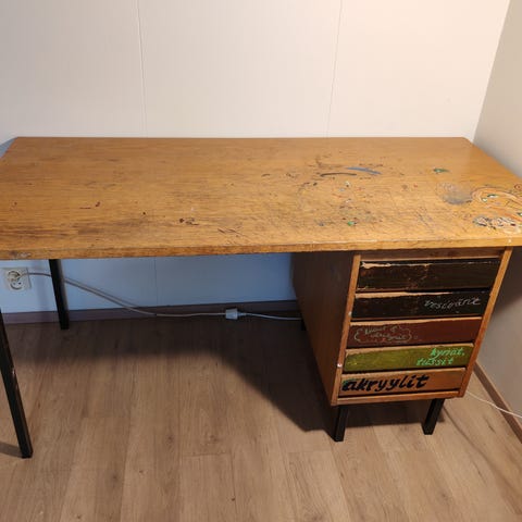 • Pöytälevyn etukulmassa kolhuja, mutta vielä hyvässä käyttökunnossa