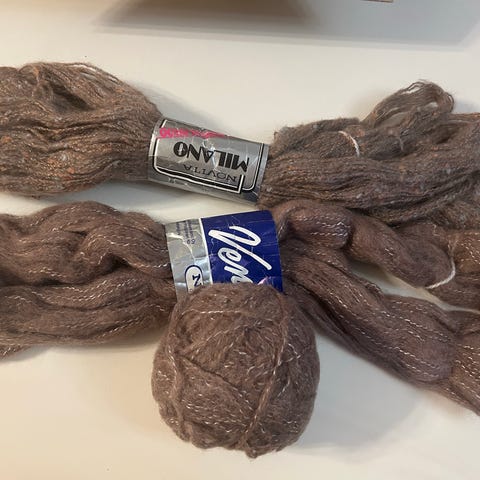 600 g sinistä, italialaista, eläväpintaista sekoitelankaa; 43 % villaa, 42 % akryyliä ja 15 % polyamidia. Ei kutita. Hinta yht. 15 euroa.