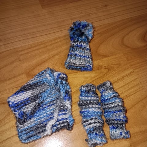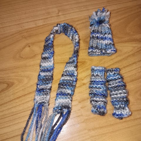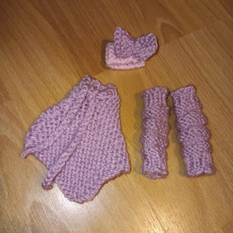 Sisältää kaulahuivin, säärystimet ja hiuspannan.