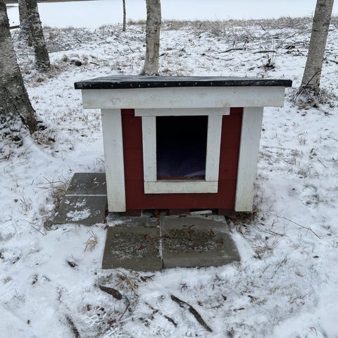 Tässäpä olisi ihan tarvikkeiden hinnalla loistava koira talo koiratarhan kulmalle!
