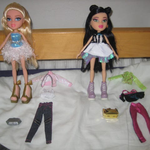 Bratz all glammed up nuket Cloe ja Yasmin omissa vaatteissaan, hyvässä kunnossa, taloudessa kissoja.