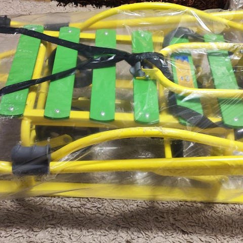 Kelkassa on hyvin luistavat metalliset jalakset, joten kelkkaa on kevyt vetää perässä.