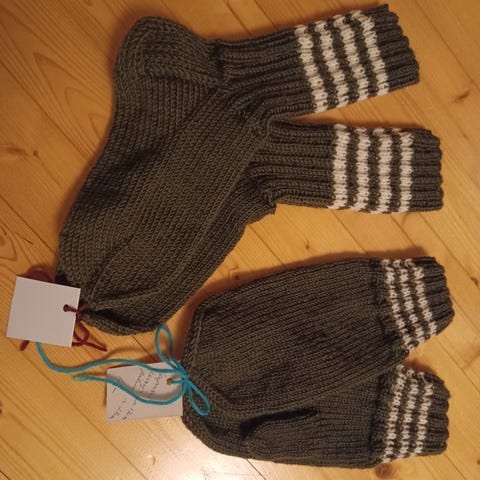 Myydään uudet käsinkudotut Jussi-sukat (2) koko 41-42 (26,5 cm). Lankana Novitan 7 veljestä. Sukissa vahvistettu kantapää. Pesu 40 asteessa. Taloudessa ei ole eläimiä eikä polteta.