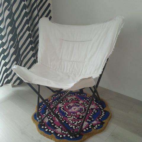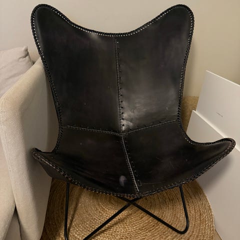 Maskusta 3 vuotta sitten ostettu lepakkotuoli. Kuosi keinonahkaa. Runko siisti ja hyvässä kunnossa.