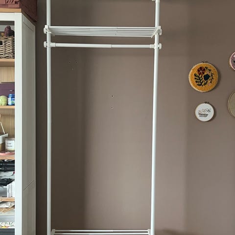 Vaatetelineessä on muutama kolhu mutta muuten se on hyväkuntoinen.