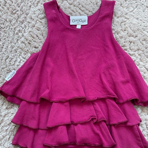 Gugguu paita, koko 104. Vaalean pinkki, rusetit hihoissa. Väri hiukan haalistunut. Eläimetön ja savuton talous.