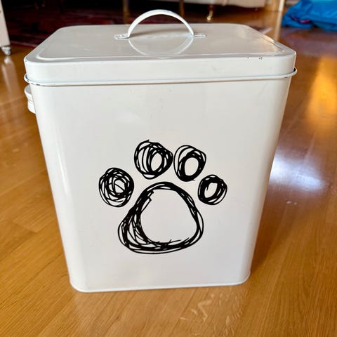 Victoria's Secret Pink pesusieni, sydänmuotoinen, vaaleanpunainen, vaahtomuovimateriaalia, koristeltu beigen värisellä koira-aiheisella kuvalla.