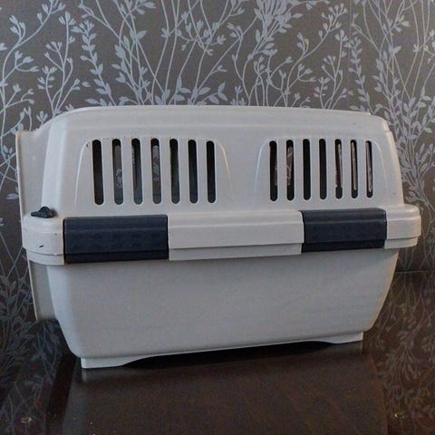 Myynnissä iso kissan hiekkalaatikko. Kopan kahva on irronnut, mutta muuten hyvässä kunnossa ja ehyt.