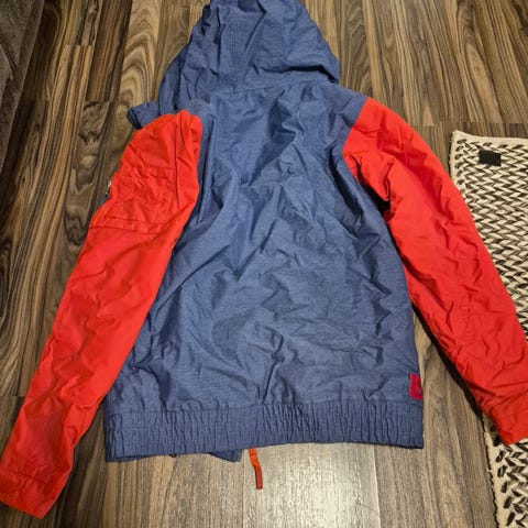 Ei varsinaisesti rikki mistään, mutta pidetty takki ja paljon pidetty.