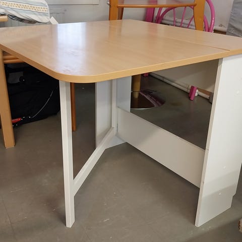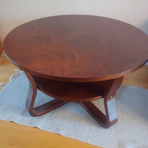 Pöydän jalan metallinrn kaulus on antautunut, joten pöytä on kenollaan ja tämän vuoksi käyttökelvoton. Näppärä hitsaa tästä vielä hyvän pöydän. Pientä käytön jälkeä löytyy, joista kuvat. Halkaisija 90 cm, korkeus 74 cm. Vain haku Kajaanista.