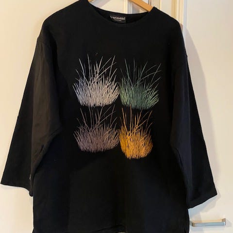Marimekko Pusero mustassa värissä, koko 3XL, valmistettu puuvillasta. Naisten vaate, jossa pitkä hiha.