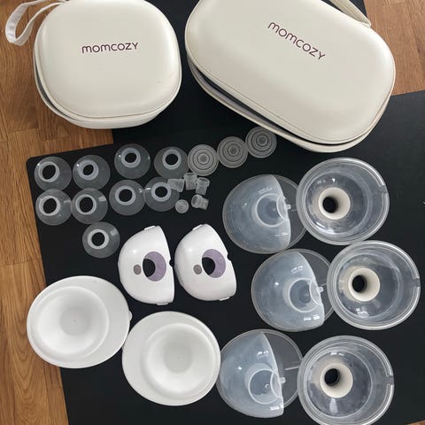 Momcozy s12 pro handsfree tuplapumput, meillä jäi käyttökerrat noin viiteen. Eli erittäin hyvä setti seuraavalle. Yksi pienennin mukana ekstrana (21mm). Ohjeet mukana ja laturijohdot.