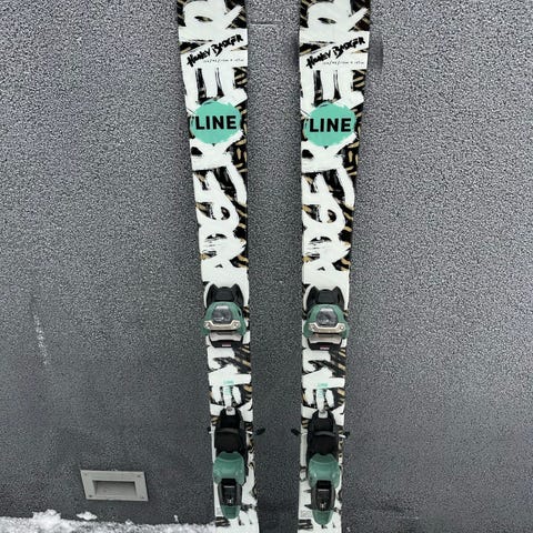 Tästä sitte Line temppu sukset 170cm, itse lopettelen laskettelua koska tärkeämpää tekemistä. Lookin siteet, ja noin puoli kautta laskettu sukset. Kantit on vielä hieman terävät.