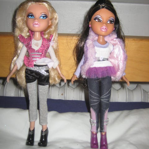 Bratz remix nuket Cloe, Sasha ja Yasmin omissa vaatteissaan, hyvässä kunnossa, taloudessa kissoja.