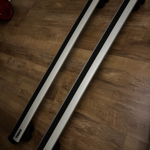 Thule WingBar Evo kattotelineet: putket 127cm ja Raised Rail jalat. Sopii autoihin, joissa on korotetut kaiteet.