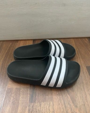 Adidas lasten sandaalit, koko 38, unisex. Mustat sandaalit, joissa valkoiset raidat.