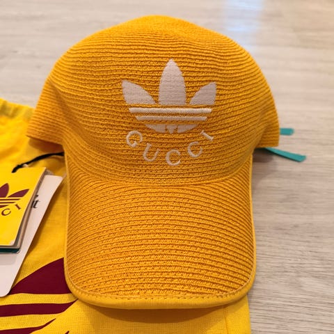 Myydään uusi ja käyttämätön kaksipuoleinen gucci x adidas lippalakki jossa tagit vielä kiinni. Ostettu vestiaire collectivelta.