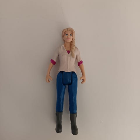 Koska Schleicheillä ei ole poliisihahmoa, tämä on ollut leikeissä meidän poliisi. Kulumajälkiä löytyy. Valmistaja siis Bullyland. Hevonen ei ole merkkituote, vaan joku jäljitelmä. Hyvin passaa leikkiin kuitenkin.