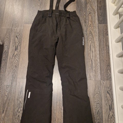 Kahdesti käytetyt, uutena ostetut icepeak mustat toppahousut joustovyötäröllä, nilkoissa joustoresori ja heijastin yksityiskohdat. Lämpimät housut pakkasille nuorelle, meillä kasvettiin näistä liian nopeasti yli.