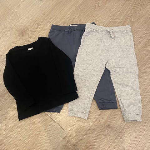 Suloinen moitteeton H&M setti koossa 92 (sis. Housut ja 2×paidat).