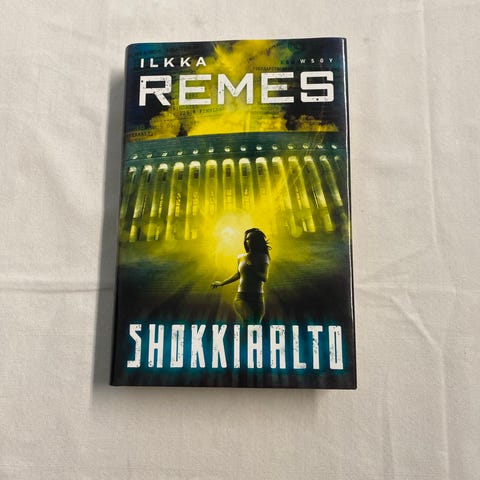 Remeksen kovakantinen jännityskirja "Shokkiaalto". Uutena ostettu ja kerran luettu.