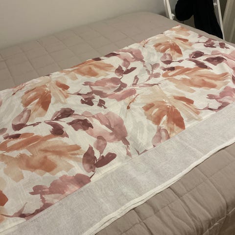 Myydään raikkaanvärinen verhokappa 210 leveä ja korkeus 69 cm voi lyhentää ikkunaan sopivaksi