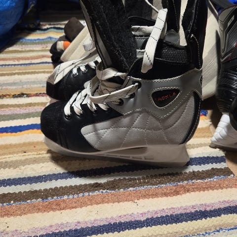 Siistikuntoiset ehjät perusluistimet teräsuojilla