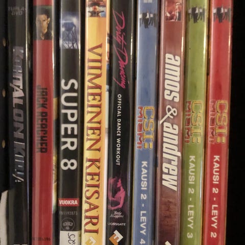 Paketti sisältää 20 kappaletta erilaisia DVD-elokuvia ja -sarjoja eri genreistä. Levyt ovat erittäin hyvässä kunnossa.