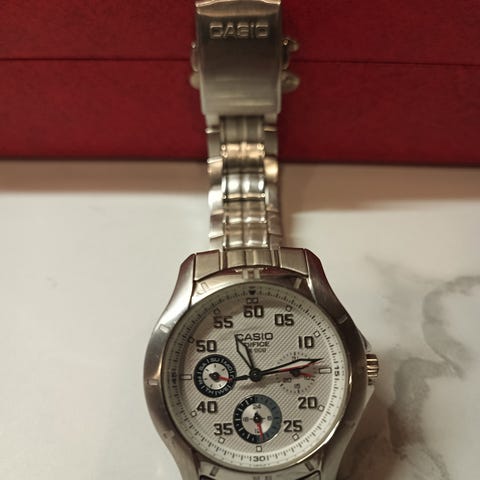 Kello on erittäin hyvässä kunnossa ja se on päivätty 28.06.2022. Kellon käynti on tarkastettu, eikä huollolle ole tarvetta pitkään aikaan. Kellon mukana tulee alkuperäiset paperit ja laatikko. Settiin kuuluu myös alkuperäinen kangasranneke.