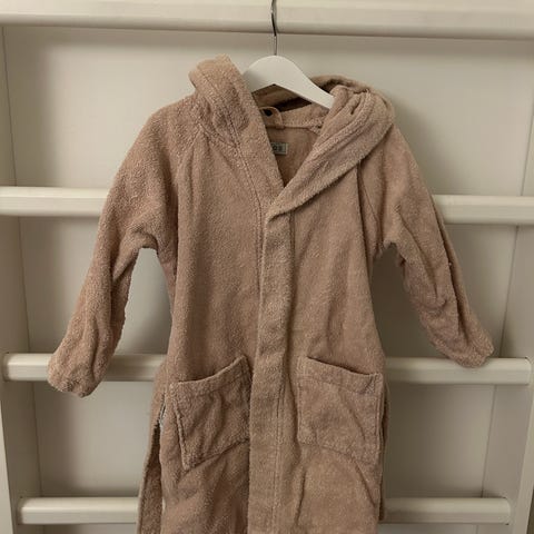 Liewoodin kylpytakki dino/krokohupulla. Käytetty, mutta ehjä. Myös vyö on tallella ja kuuluu toki kauppaan.
