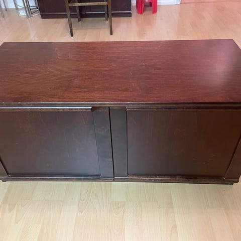 Täysipuinen tummanruskeaksi käsitelty Askon-hyllykkö. Kestävä ja laadukas hylly, jossa pieniä käytönjälkiä.