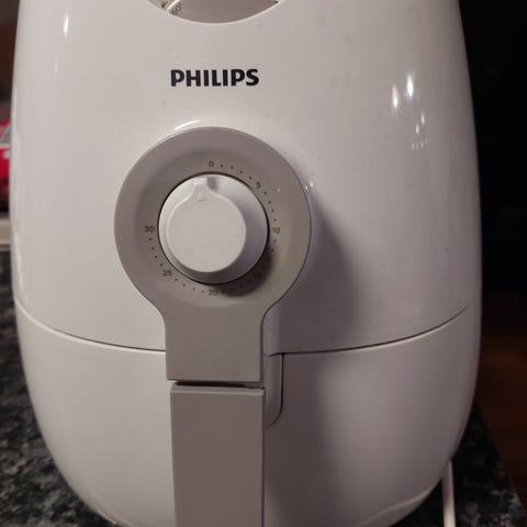 Hyväkuntoinen Philipsin Airfryer, 4.1 litran kapasiteetilla. Pari vuotta satunnaisesti käytössä, nyt jää auttamatta pieneksi kun taloudessa onkin kaksi ihmistä. Korin pinnoitteessa ei jälkiä. Mukaan korin sisälle sopiva ritilä jolla saa kahteen kerrokseen ruokaa. Nouto Ylöjärveltä.