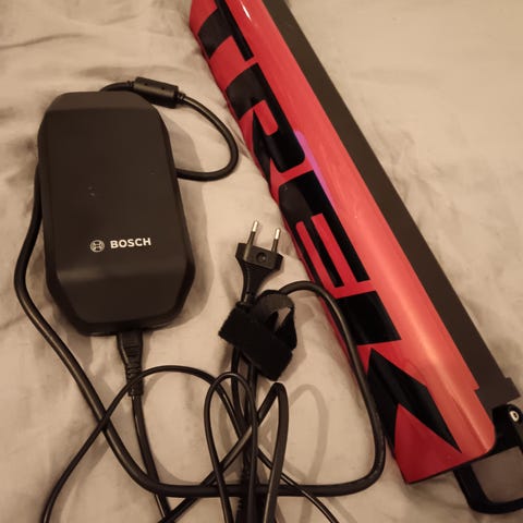 Trek sähköpyörän akku, ja laturi. Ollut vara akkuna. Ajettu n.280km. Vm.2024. Pidetty lämpimässä. Lataa moitteetta, ja pitää varauksen kuin uusi.