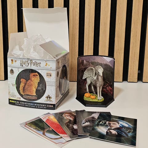 Myydään Harry Potter -hahmo. Mukana tulevat 6,5 cm korkean Harryn lisäksi Hedwig, matkalaukku, taikasauva, kirje, Tylypahka-merkki ja Tylypahka-merkin muotoinen säilytysrasia. Hintapyyntö on kuusi euroa ja lähetän tarvittaessa postikuluja vastaan.