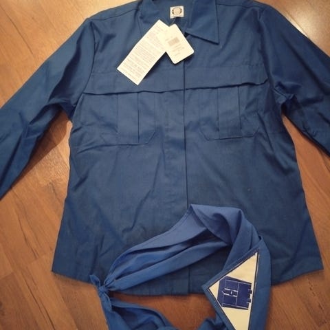 S-kokoinen naisten mallin partiopaita. Paidassa käytön jälkiä.