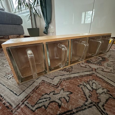 Siistissä kunnossa ja lasiosat ehjiä. Voi kiinnittää keittiökaapin alapuolelle tai säilyttää tasolla, jolloin päällekin mahtuu tavaraa.