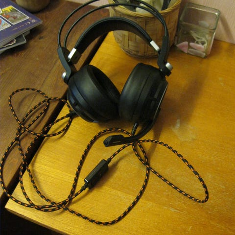 Kuulokkeet on mustat ja niissä on säädettävä panta,Johdossa on säätöpaneeli äänenvoimakkuuden hallintaan.