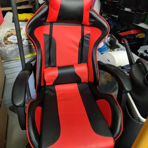 Myynnissä L33T Gaming E-sport -pelituoli. Säädöt toimivat moitteitta. Nahkapäällinen kärsinyt käytöstä. Helposti kuitenkin ehostettavissa.