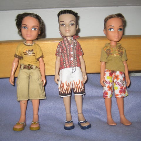Bratz boyz nu cool nuket Cameron ja Eitan omissa vaatteissaan, hyvässä kunnossa, taloudessa kissoja.