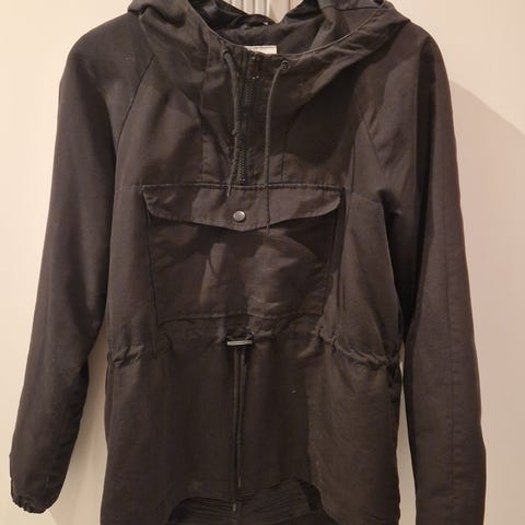 Kevyesti topattu anorakki -mallinen takki. Värinä puuteriroosa. Erinomaisessa kunnossa, en löytänyt vikoja tms. käytön jälkiä.